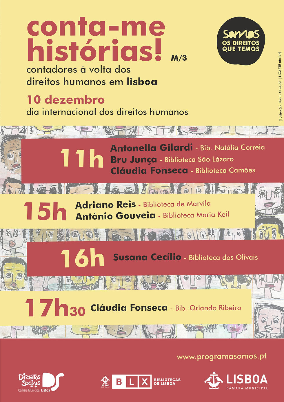 A iniciativa "Conta-me Histórias!" enquadra-se no SOMOS - Programa Municipal de Educação para a Cidadania Democrática e Direitos Humanos e convida todos e todas a participar naquele que é um momento de celebração dos Direitos Humanos na cidade, porque... SOMOS os Direitos que Temos.